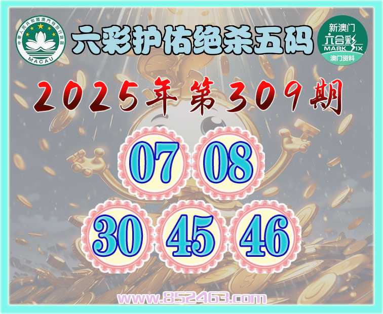 309期:【六彩护佑】 🐁绝杀五码🐁【07.08.30.45.46】开:00准