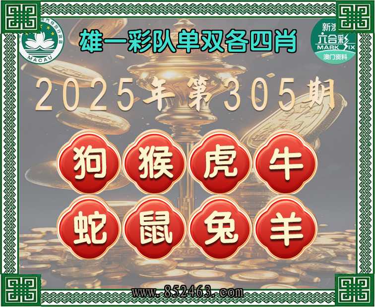 305期:《雄一彩队》 👉单双各四肖👉开:鼠42