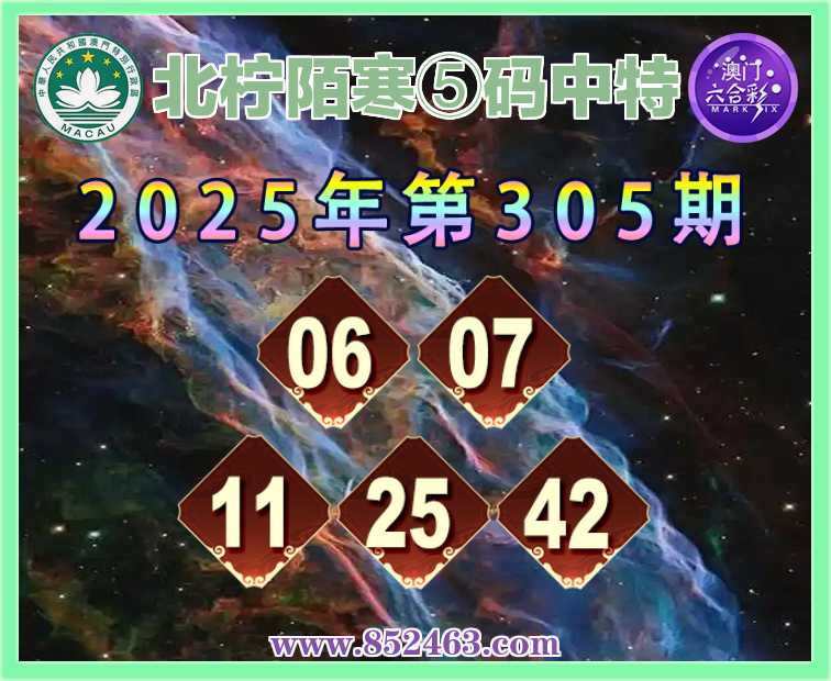 305期: ✂️『北柠陌寒』 ✂️⑤码中特✂️【06.07.11.25.42】开:42