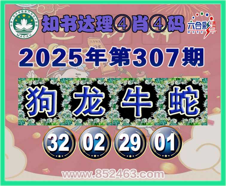 307期: 🏵️『知书达理』 🏵️④肖④码🏵️【龙牛蛇】【32.02.29.01】开:狗20