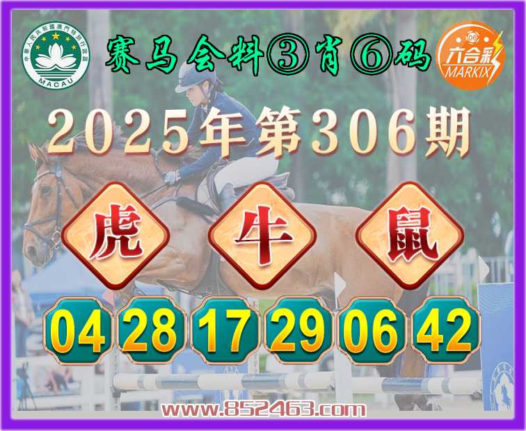 306期:『赛马会料』 🥠③肖⑥码🥠【虎鼠】开:牛17
