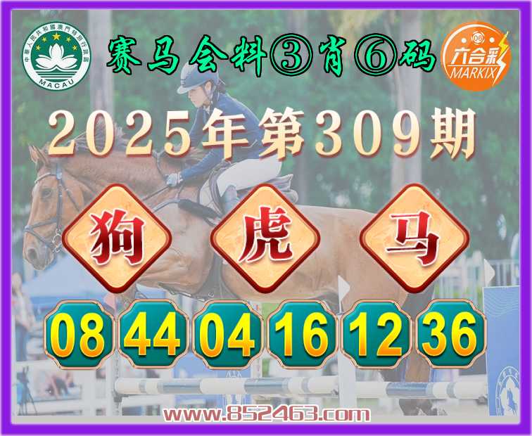 309期:『赛马会料』 🥠③肖⑥码🥠【狗虎马】开:00准