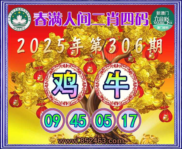 306期:《春满人间》 💎二肖四码💎【鸡】【09.45.05.17】开:牛17