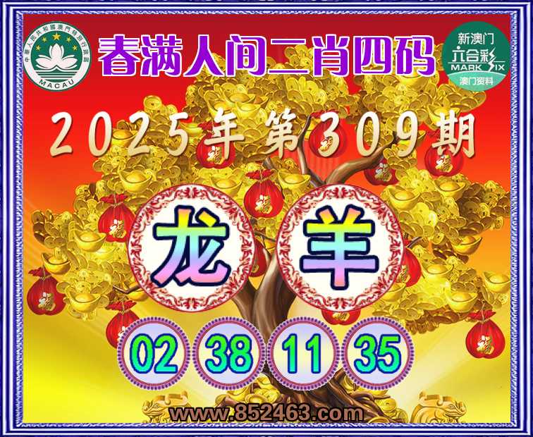 309期:《春满人间》 💎二肖四码💎【龙羊】【02.38.11.35】开:00准