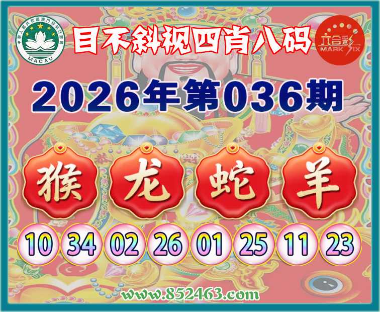 036期:《目不斜视》  ♣️四肖八码 ♣️【猴龙蛇羊】开:00准